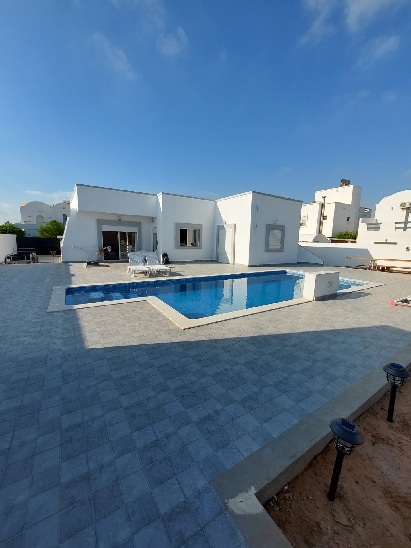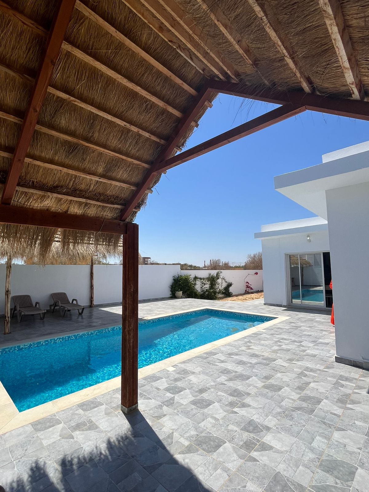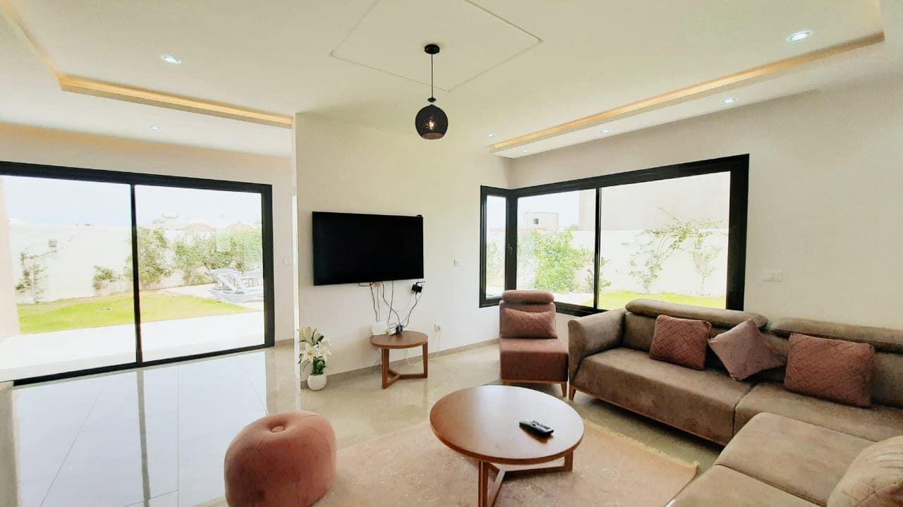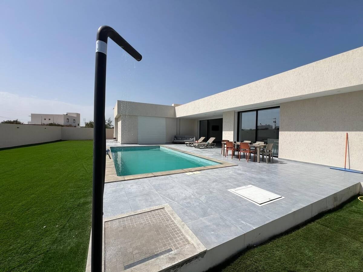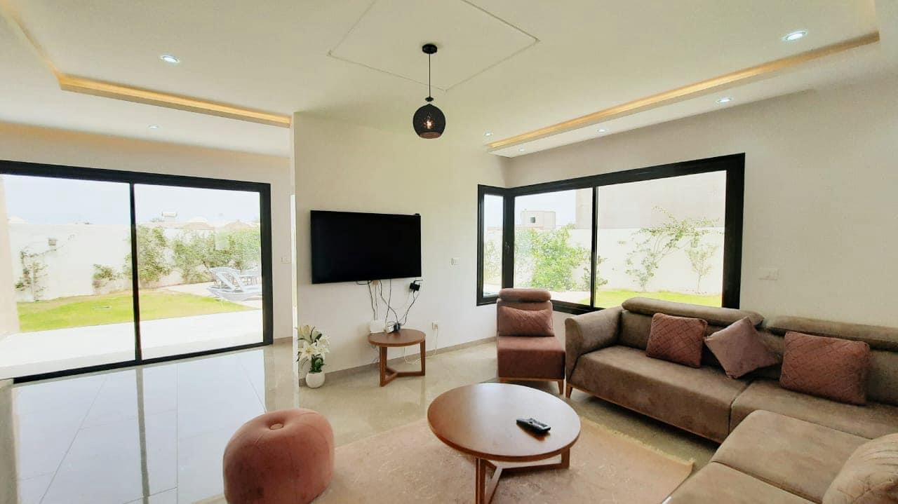 Bienvenue à 𝗩𝗶𝗹𝗹𝗮 𝗦𝗲𝗿𝗲𝗻𝗶𝘁𝗮̀ , votre destination de rêve pour des vacances inoubliables à Djerba ! Notre villa de location est située à Arkou …