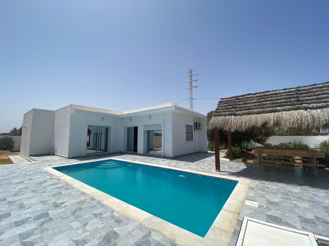 Djerba Immobilier met en #𝐋𝐨𝐜𝐚𝐭𝐢𝐨𝐧 une très Jolie #𝐯𝐢𝐥𝐥𝐚 située à ARKOU.. 𝙡𝙖 𝙫𝙞𝙡𝙡𝙖 𝙚𝙨𝙩 𝙘𝙤𝙢𝙥𝙤𝙨𝙚́𝙚 𝙙𝙚 deux suites parentale et une chambre à coucher, une belle salon donnant sur la piscine ,une cuisine bien équipée , un beau piscine et un abri voiture à l’extérieur