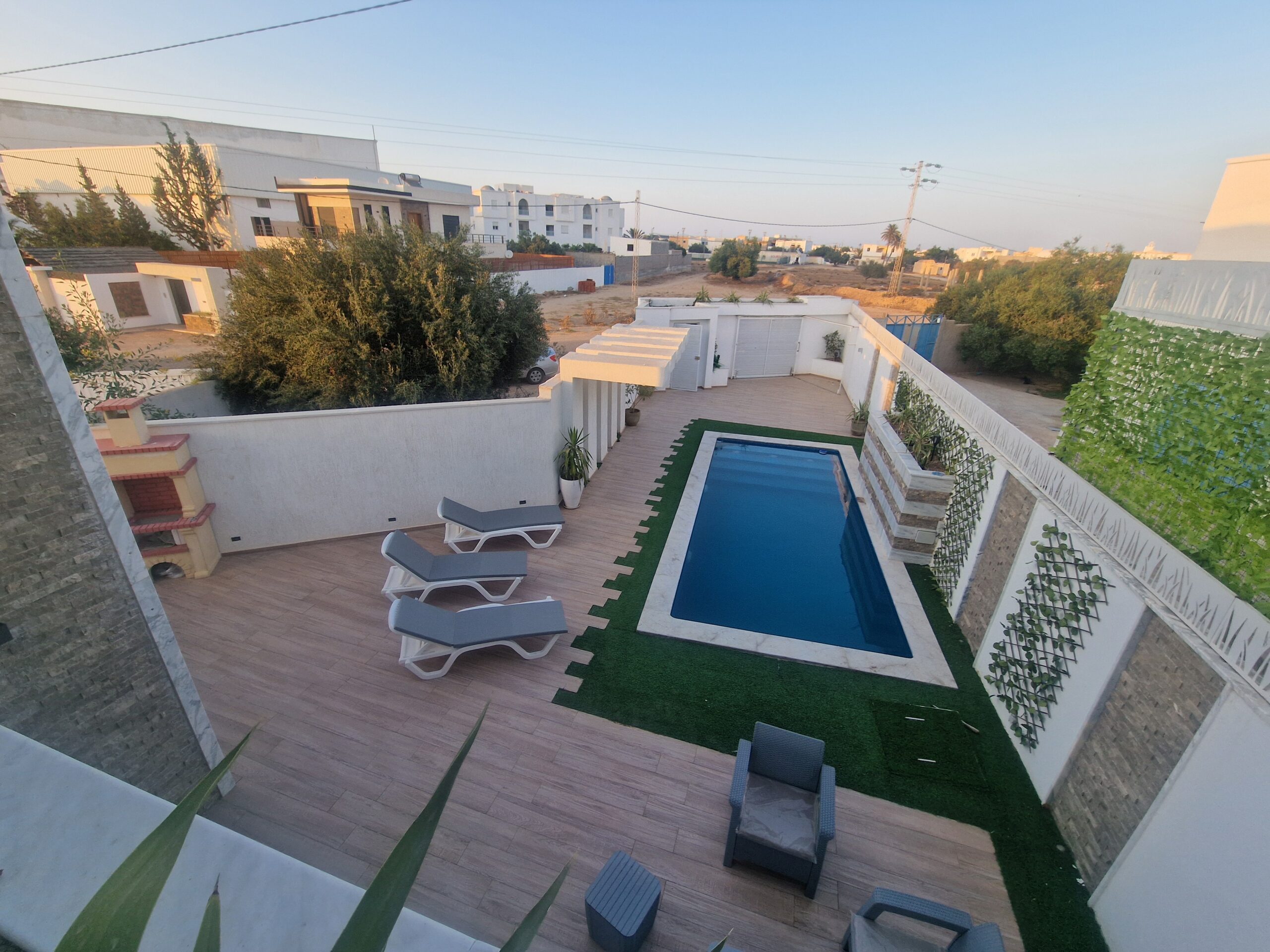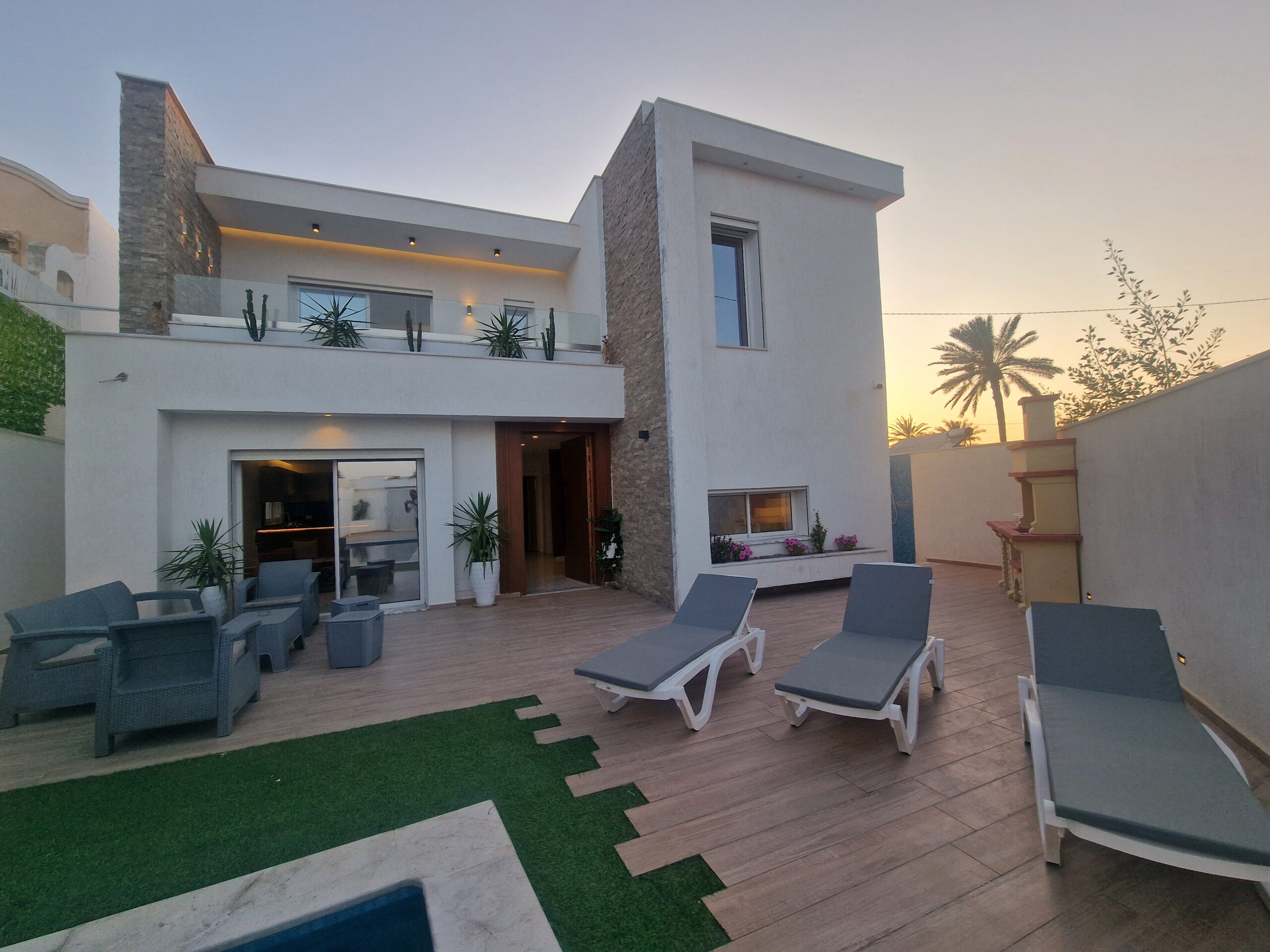 Découvrez la toute nouvelle Villa Bayazid à TezdaineDisponible dès maintenant pour vos vacances à Djerba. Offrez-vous un séjour d’exception dans cette superbe villa moderne, parfaitement équipée pour accueillir familles et groupes d’amis. Profitez du confort, de l’intimité et d’un cadre paisible à quelques minutes des plus belles plages de l’île.