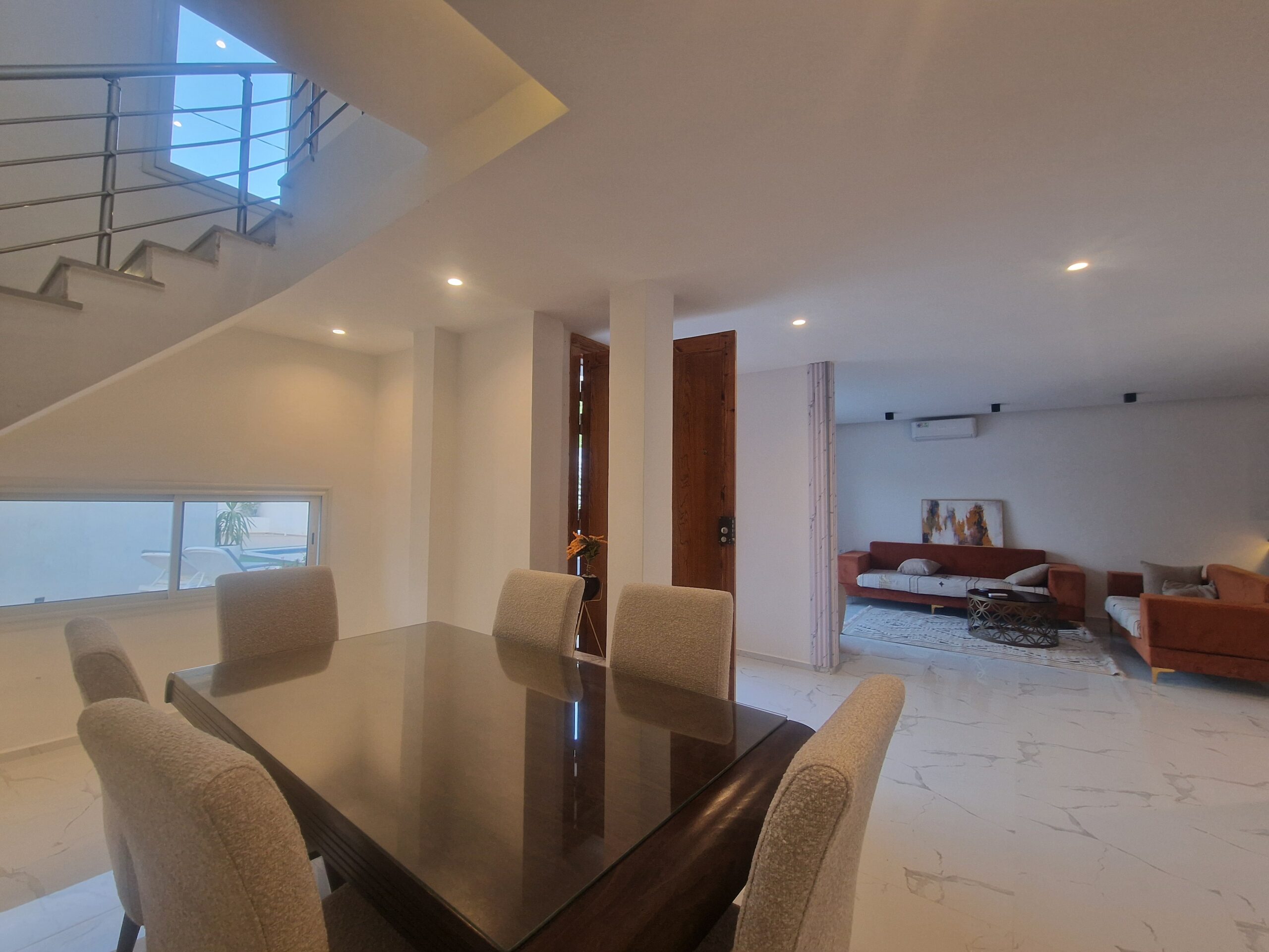 - Équipements : Climatisation, Parking, Piscine, Salle à manger, Terrasse, TV, WiFi