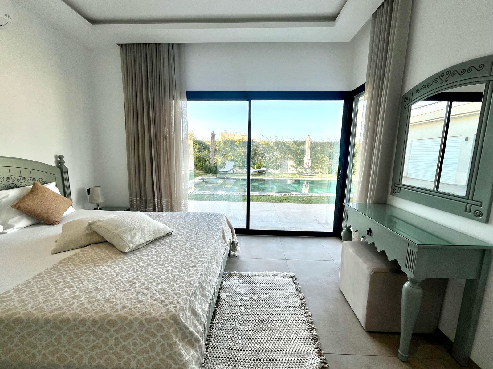 - Équipements : Climatisation, Parking, Piscine, Salle à manger, Terrasse, TV, WiFi