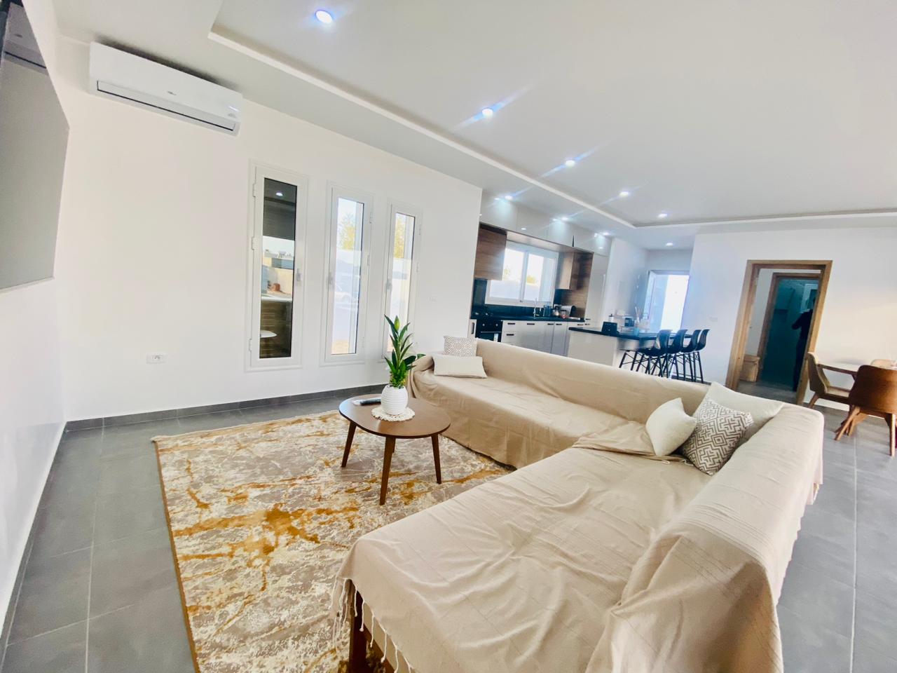 À louer – Appartement S+2 à Djerba MidounSitué sur la route du Phare, à seulement 5 minutes de la plage, cet appartement S+2 vous offre un cadre agréable pour vos séjours ou votre vie quotidienne. Proche de toutes commodités.