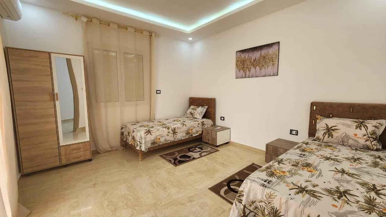 À louer – Appartement S+2 à Djerba Midoun Situé sur la route du Phare, à seulement 5 minutes de la plage, cet appartement S+2 vous offre un cadre agréable pour vos séjours ou votre vie quotidienne. Proche de toutes commodités.