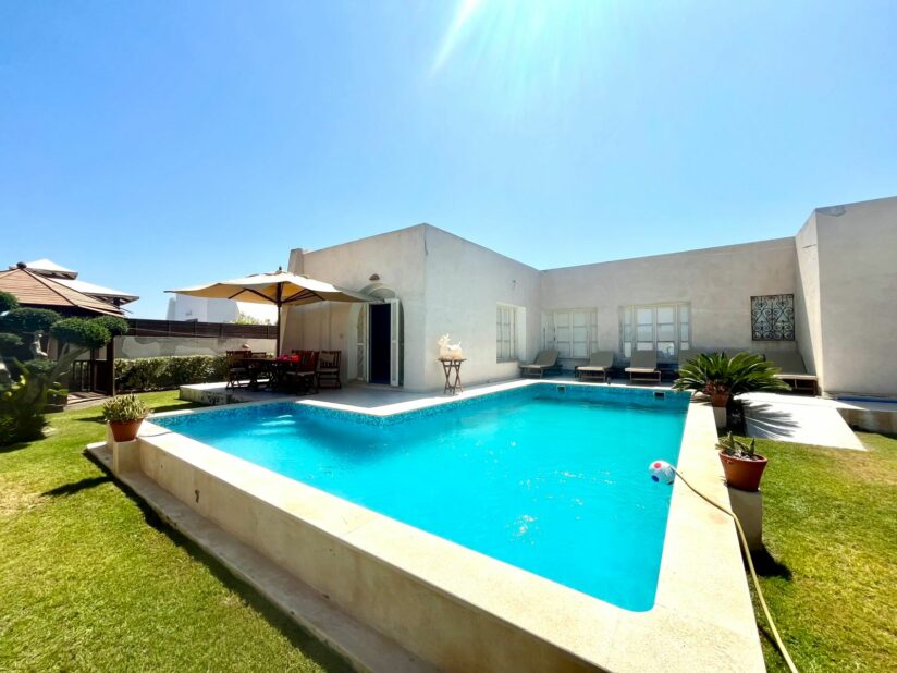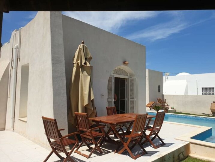 Vous recherchez une villa à Midoun Djerba idéale pour les familles nombreuses ? Ne cherchez pas plus loin que la Villa JASMINE ! Cette luxueuse villa offre un spacieux terrain de 450m², 145m² de surface couverte, deux chambres, une cuisine américaine et deux salles de bain. Profitez d’un après-midi ensoleillé au bord de la piscine ou préparez un délicieux repas dans le jardin. Découvrez la vie de luxe.