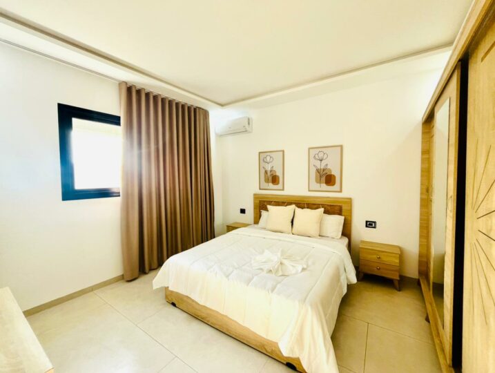 - Équipements : Climatisation, Parking, Piscine, Salle à manger, Terrasse, TV, WiFi