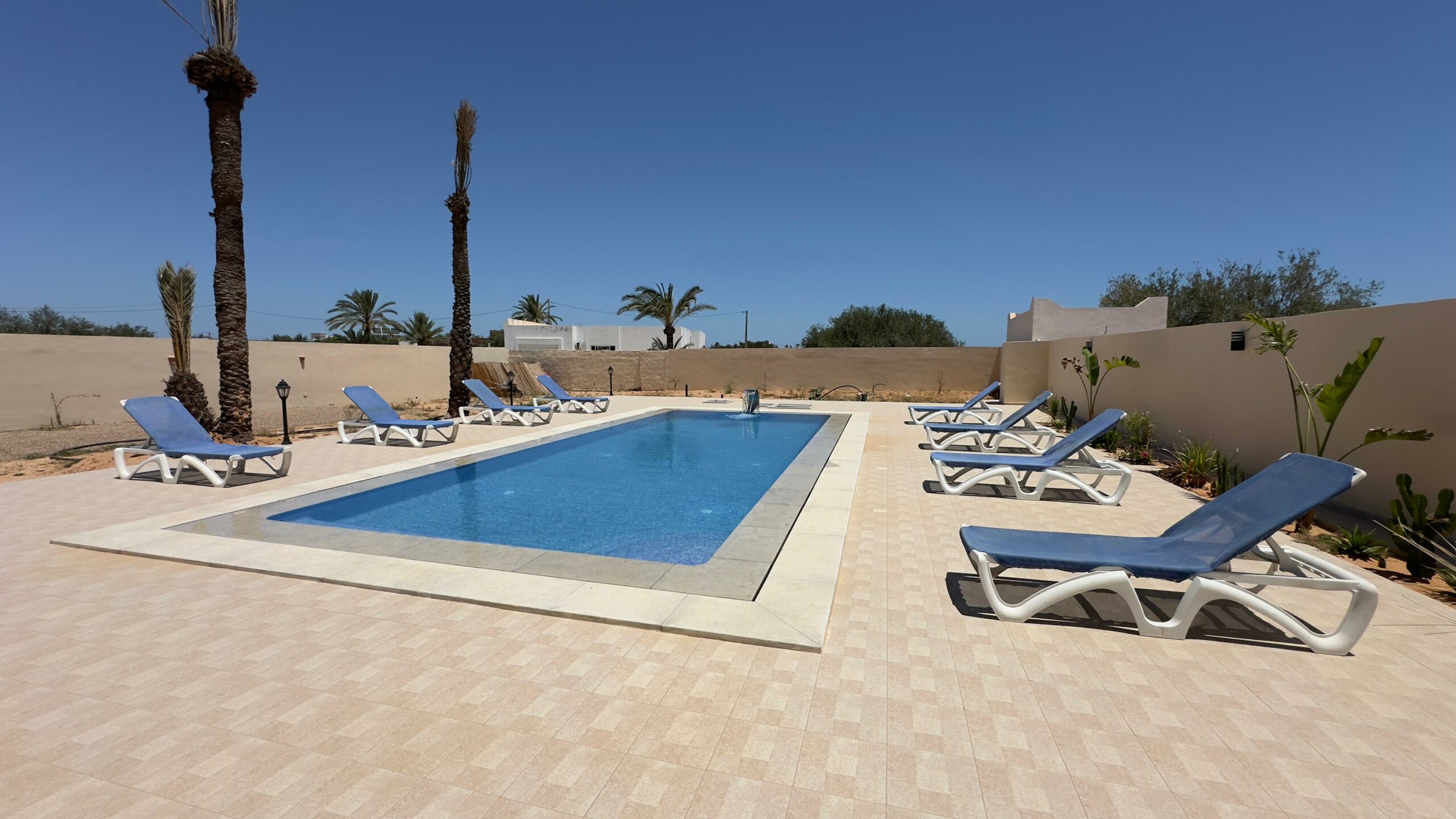 Dar El Bahia – Villa à louer à Tezdaine Découvrez Dar El Bahia, une charmante villa située à Tezdaine, idéale pour un séjour en toute tranquillité. Elle comprend une suite parentale, deux chambres, un salon, une cuisine équipée, ainsi qu’une piscine privée pour profiter pleinement du soleil.