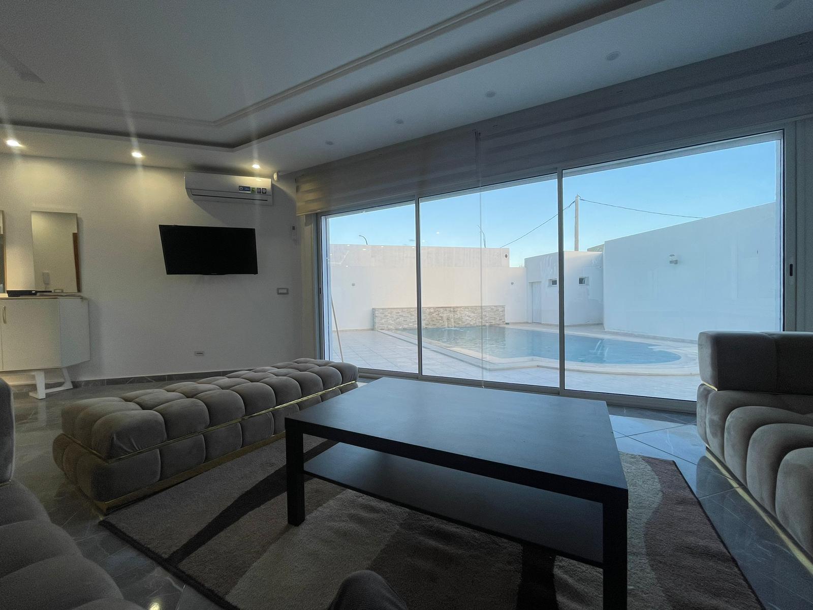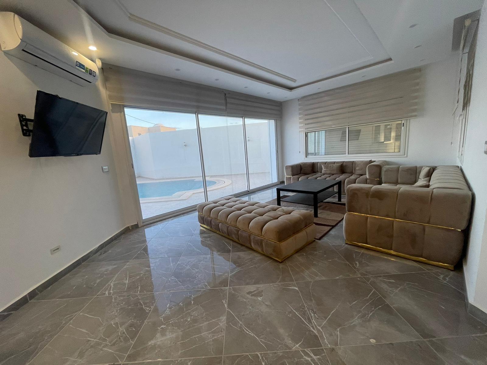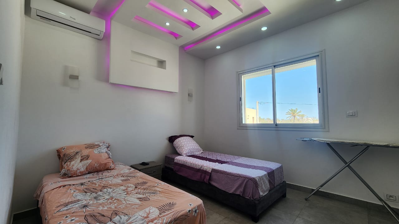 Profiter de passer des belles vacances dans cette magnifique villa S+4 à Aghir Djerba Elle dispose une suite parentale ,3 chambres à coucher ,salle d’eau,cuisine bienéquipée