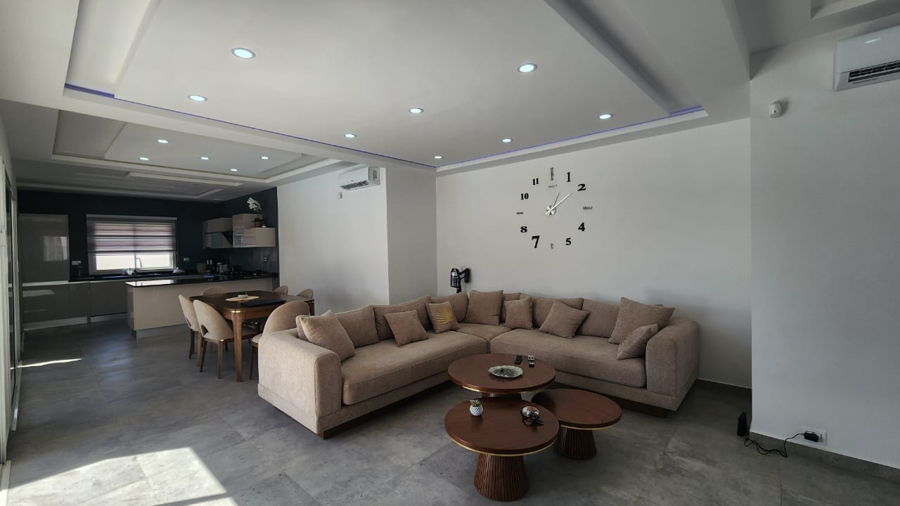 Magnifique villa pour les vacances entre les familles ou les groupes d’amis en quête de détente et de tranquillité. Cette villa spacieuse et élégamment décorée dispose de trois chambres confortables, Le salon est lumineux et aéré,