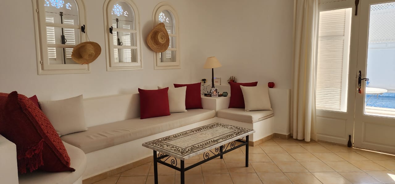 Location Vacances La Villa Anis est une escapade paradisiaque nichée sur l’île de Djerba, dans un quartier très calme « Temlel » offrant un