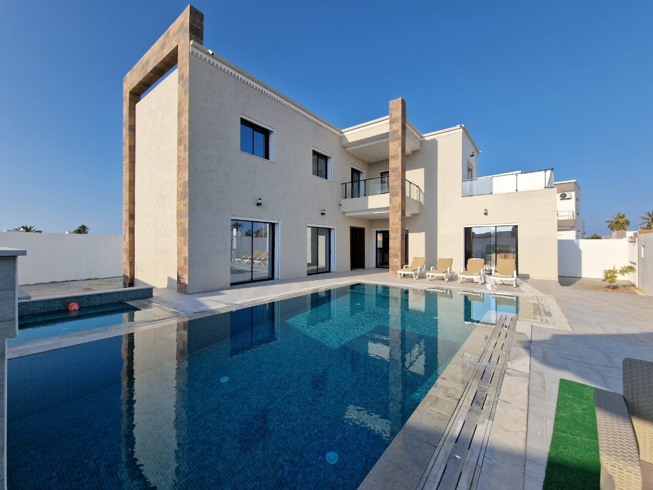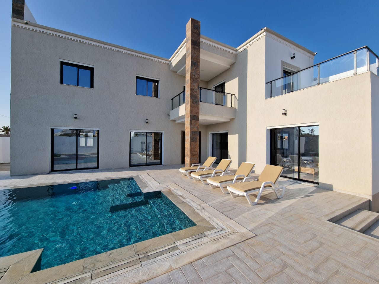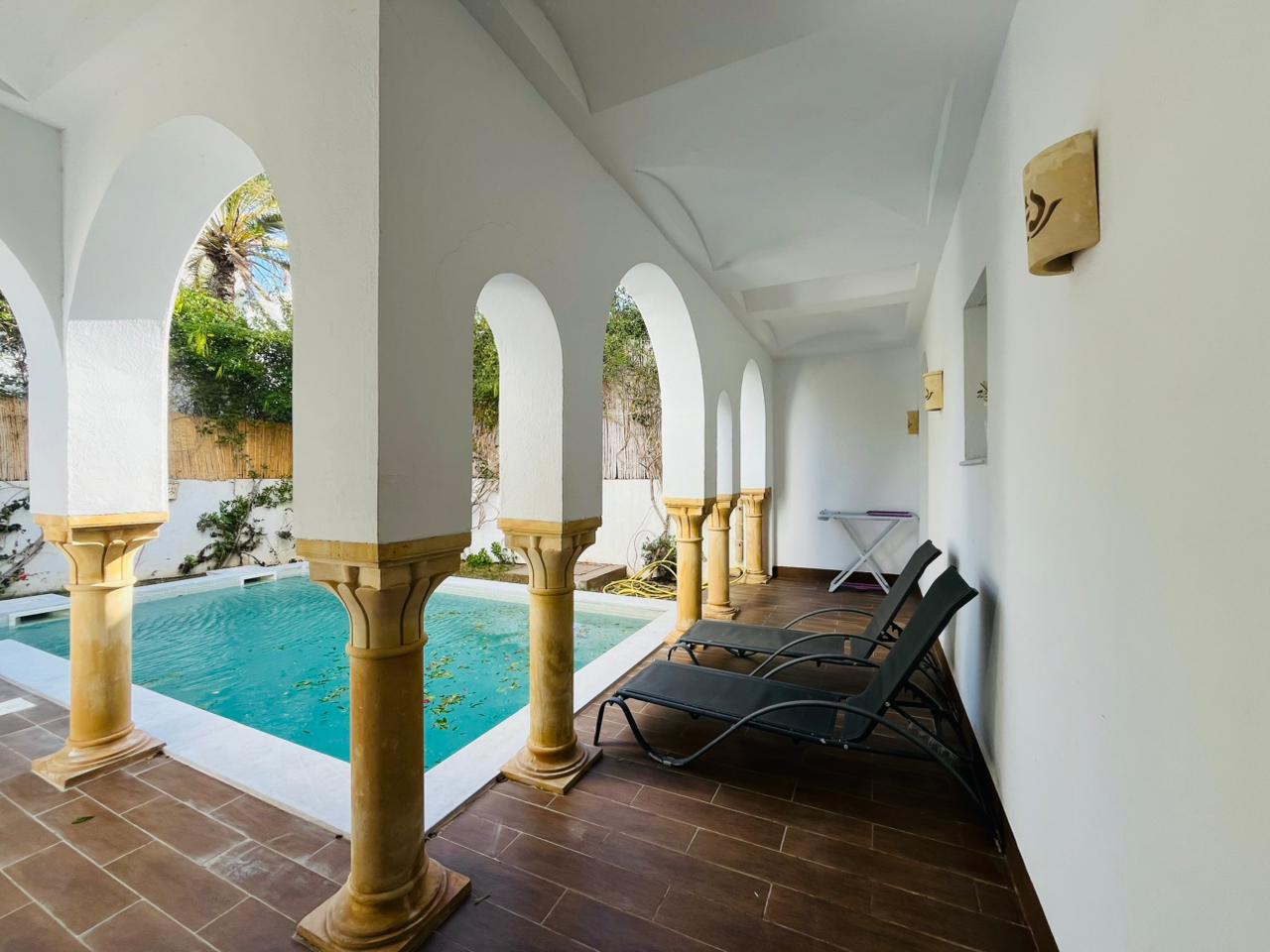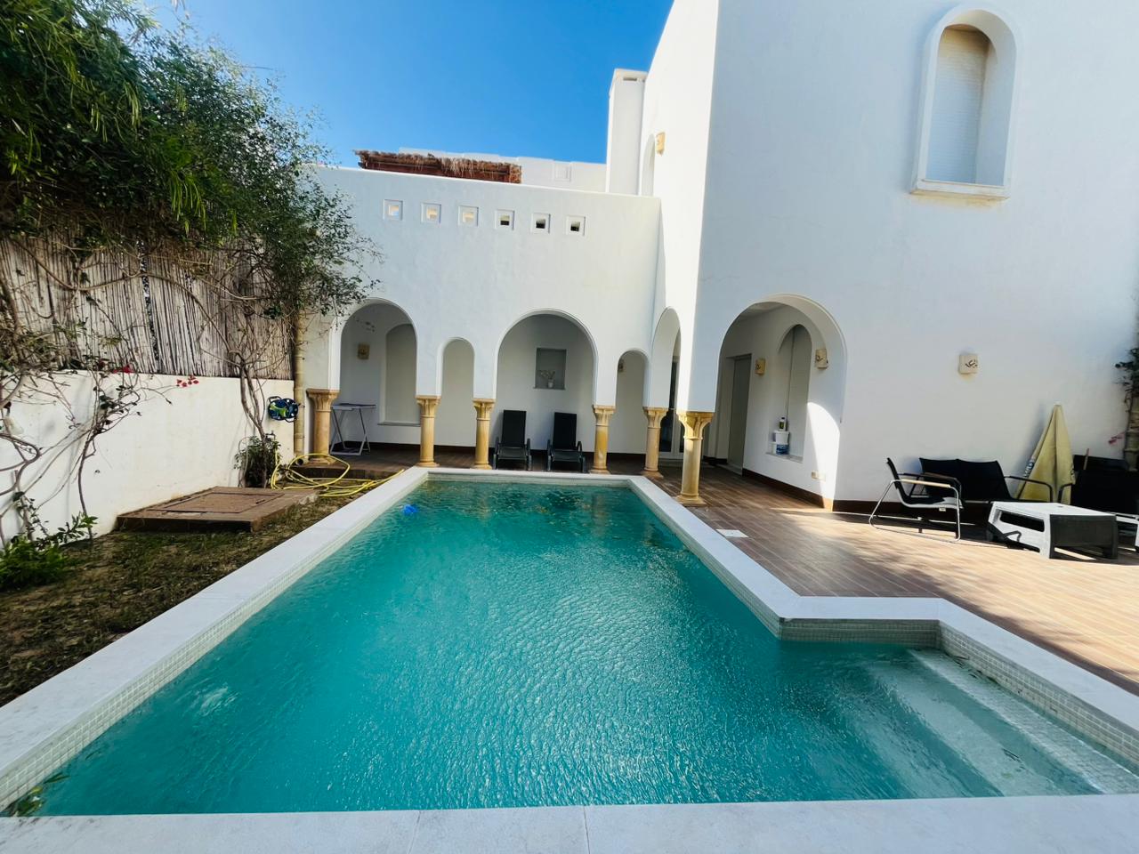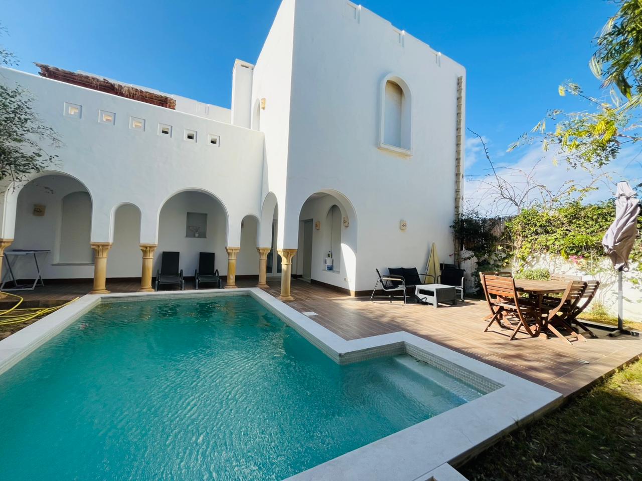 On met à votre disposition DAR MIDOUN avec une terrasse , une piscine cuisine bien équipée , salle de séjour avec un coin de salle à manger, 5 chambres à coucher dont une suite parentale et deux salles d’eaux Faites passer vos vacances au niveau supérieur avec un séjour !